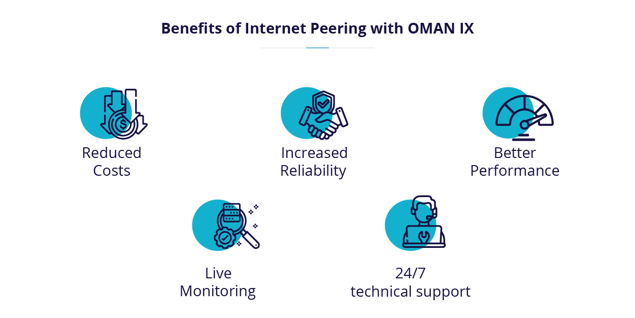 Internet peering is achieved through an Internet Exchange Point (IXP). By connecting physically to OMAN-IX over an Internet Peering Service, customers are immediately linked to all participating networks through a shared Ethernet fabric. Carriers, ISPs, and CDNs can enhance their internet network's performance, achieving low-latency and cost-effective interconnection.